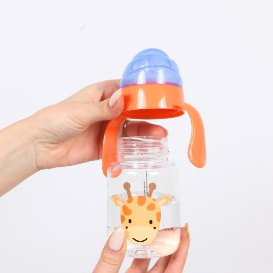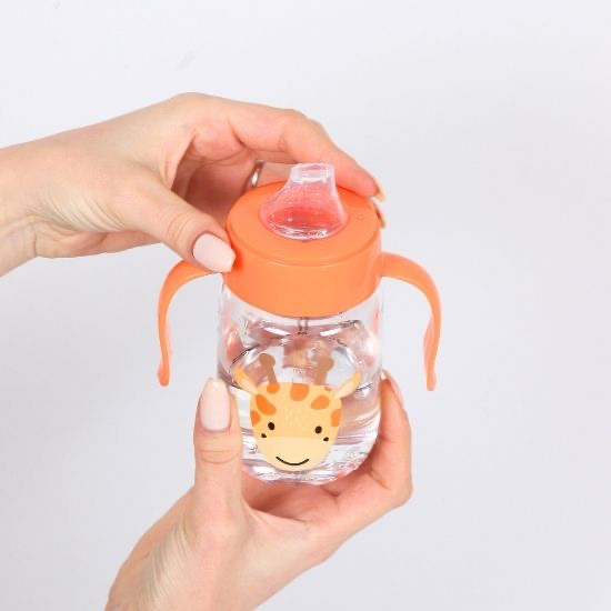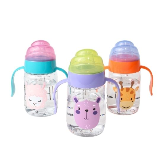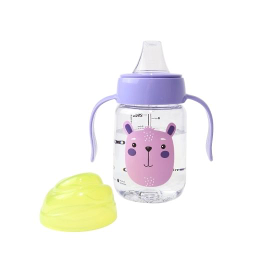 A lightweight baby bottle made from BPA-free tritan, designed with easy-grip handles and a soft silicone mouthpiece. Durable, clear, and comfortable for early self-feeding.
