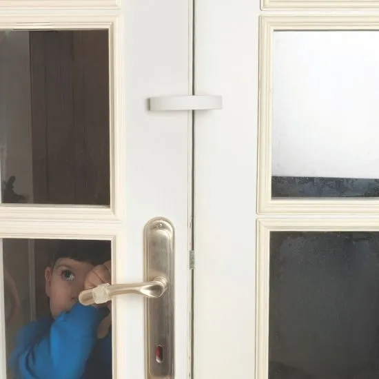 This soft foam door stopper prevents doors from closing fully, protecting children’s fingers from getting caught. It slides easily onto the door and stays securely in place.