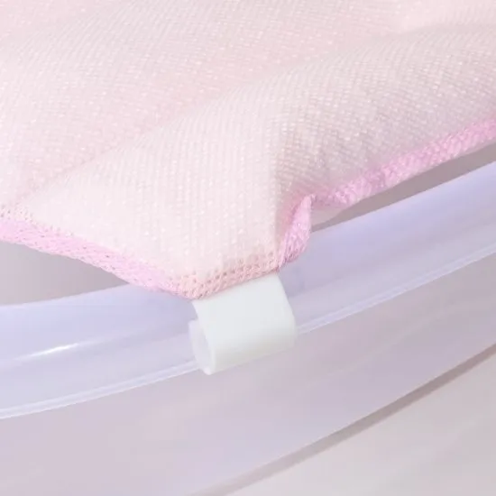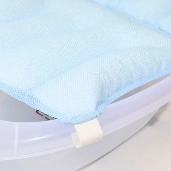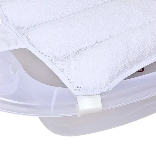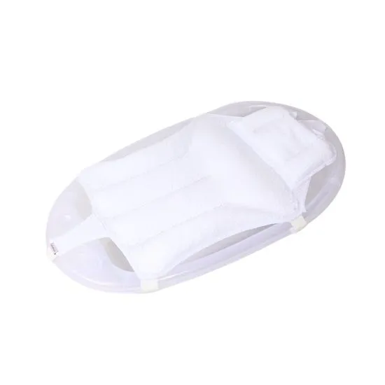 A supportive bath net filled with soft foam beads that adapt to the baby’s body. Features six strong plastic holders for safe and stable use.