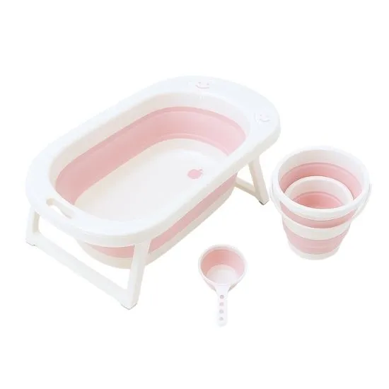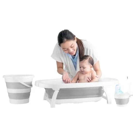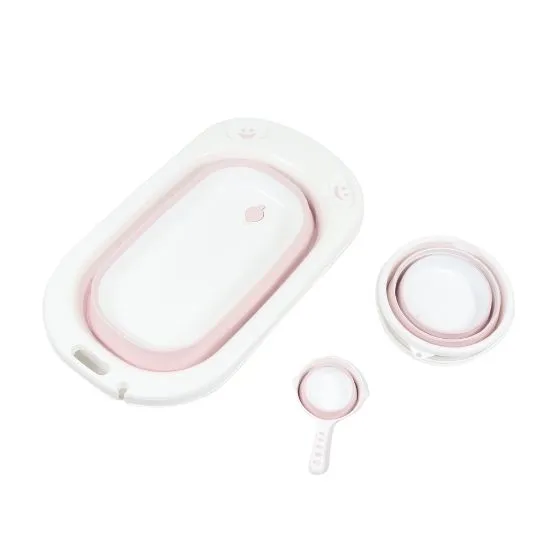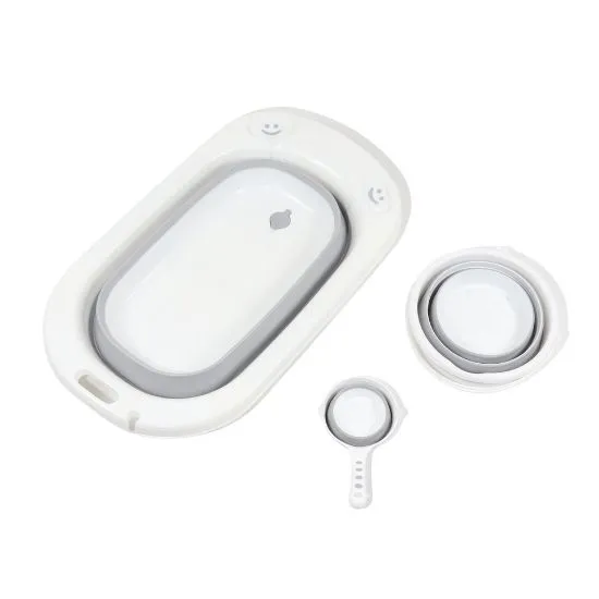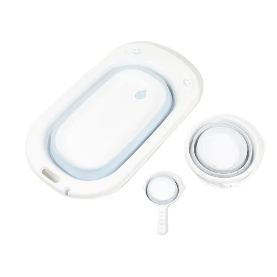 A practical 3-piece foldable bath set including a bathtub, bucket, and stoup. Made from durable BPA-free silicone and plastic, offering a lightweight, hygienic, and budget-friendly bathing solution.