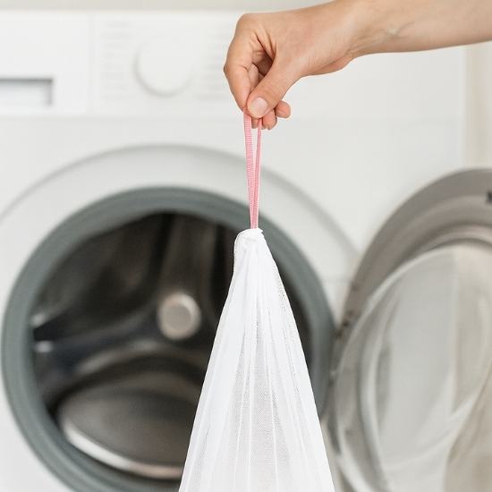 Laundry bag (net) designed to protect delicate baby clothes during washing. It helps prevent tangling, stretching, and damage while allowing water and detergent to circulate freely.