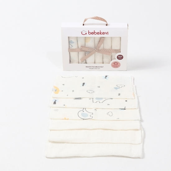 Cotton handkerchief set presented in a box, made from 100% cotton muslin fabric and OEKO-TEX® certified. Designed for gentle daily use, offering a lightweight and soft feel suitable for baby skin.