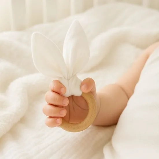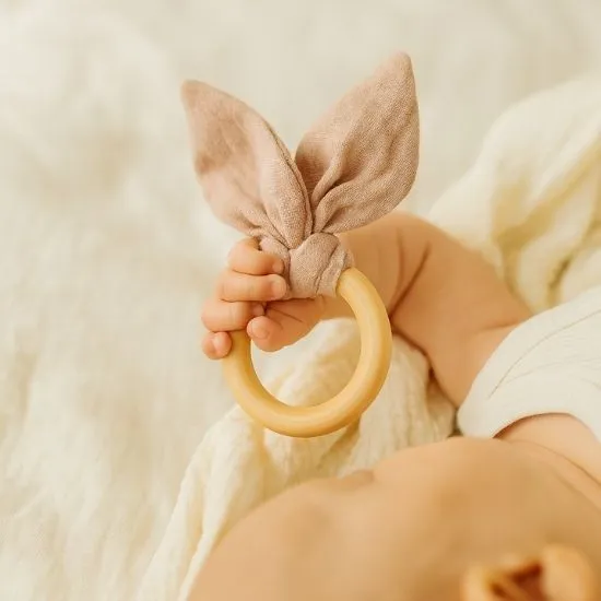 100% Cotton 2 Layers Muslin Fabric, 100% Wood Teether