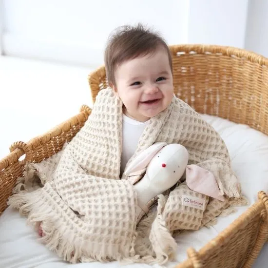 A soft muslin waffle blanket combining the airy feel of muslin with the textured warmth of a waffle weave. Lightweight, breathable, and perfect for everyday comfort.