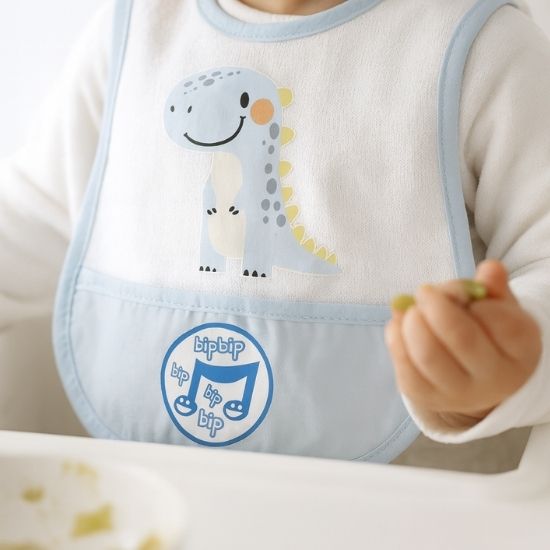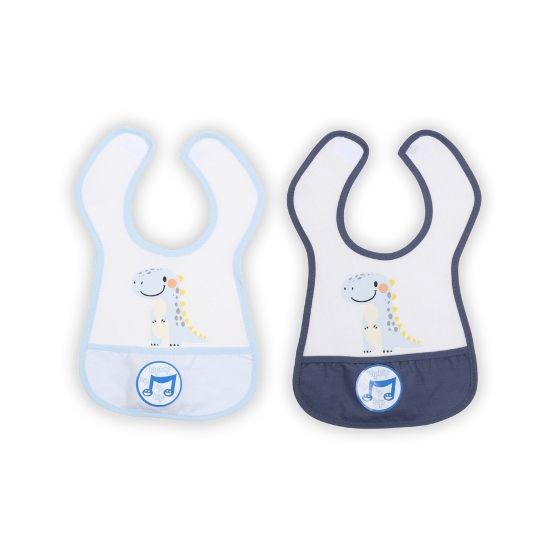 Patterned Baby Bib with Pocket – Smiling Dino
