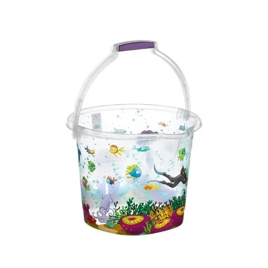 A lightweight transparent bucket with a printed pattern. Practical for daily bath routines.